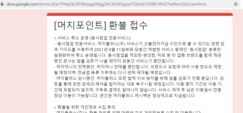 머지포인트 환불 : 머지포인트 환불신청하기 / (3) 회사와 소비자 사이 분쟁의 규정, 해결 조항을 포함합니다.